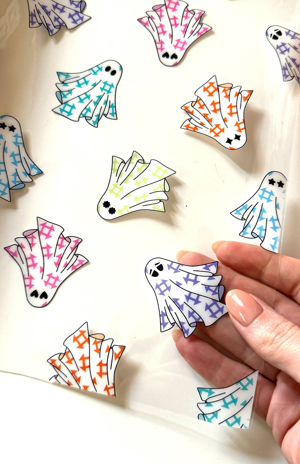 The “Quilty Ghosts” clear vinyl features a happy repeat of the cutest little quilt ghosts you have seen! The white ghosts feature light grey churndash blocks and different eyeballs. These ghosts will make any halloween sewing Boo-tiful and Spook-tacular!